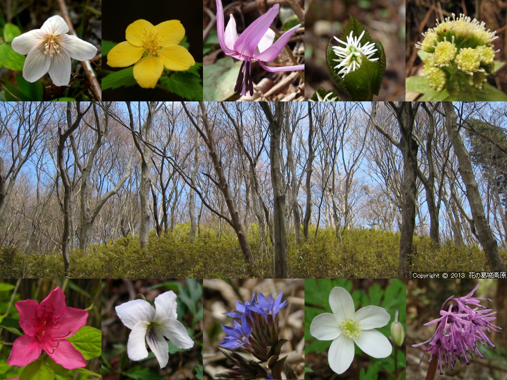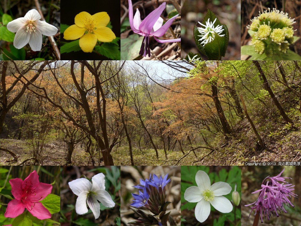 2013年 夏の壁紙の背景写真の解説 ◎左側より「ひと時の休息の時間・自然つつじ園」「爽やかに夏の風渡る自然つつじ園」「清らかな水の音・青崩登山道にて」