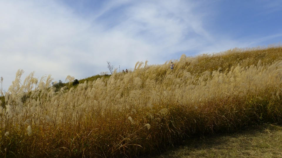 大阪湾に沈む夕日が、山頂のススキ原を黄金色に染め上げる光景を見ずして