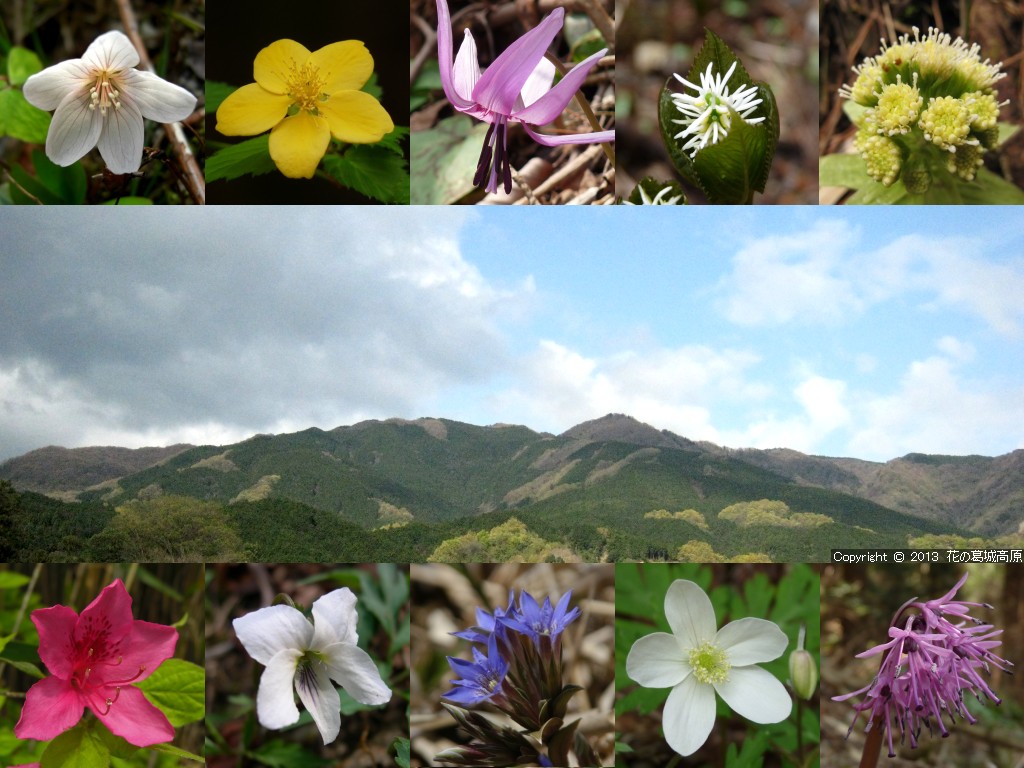 2013年 春の壁紙の背景写真の解説 ◎左側より「待ちわびた春の訪れ・自然研究路」「優しいこもれびが降り注ぐ自然研究路」「御所市内から眺めた春の大和葛城山」