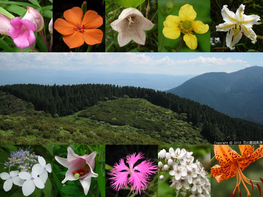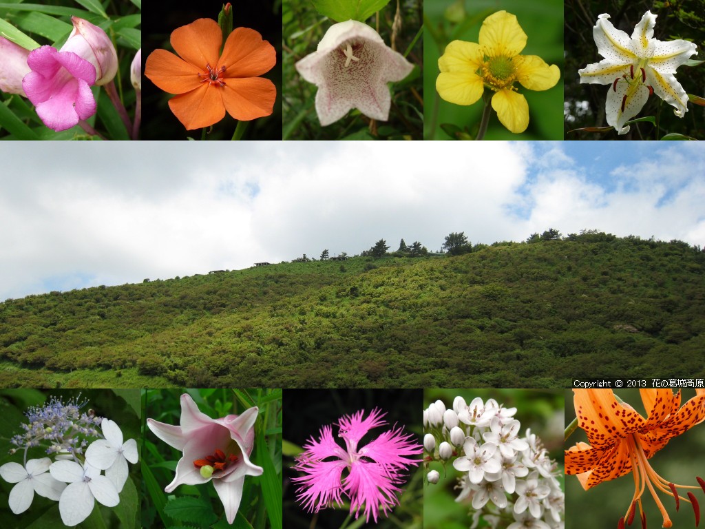 2013年 夏の壁紙の背景写真の解説 ◎左側より「ひと時の休息の時間・自然つつじ園」「爽やかに夏の風渡る自然つつじ園」「清らかな水の音・青崩登山道にて」